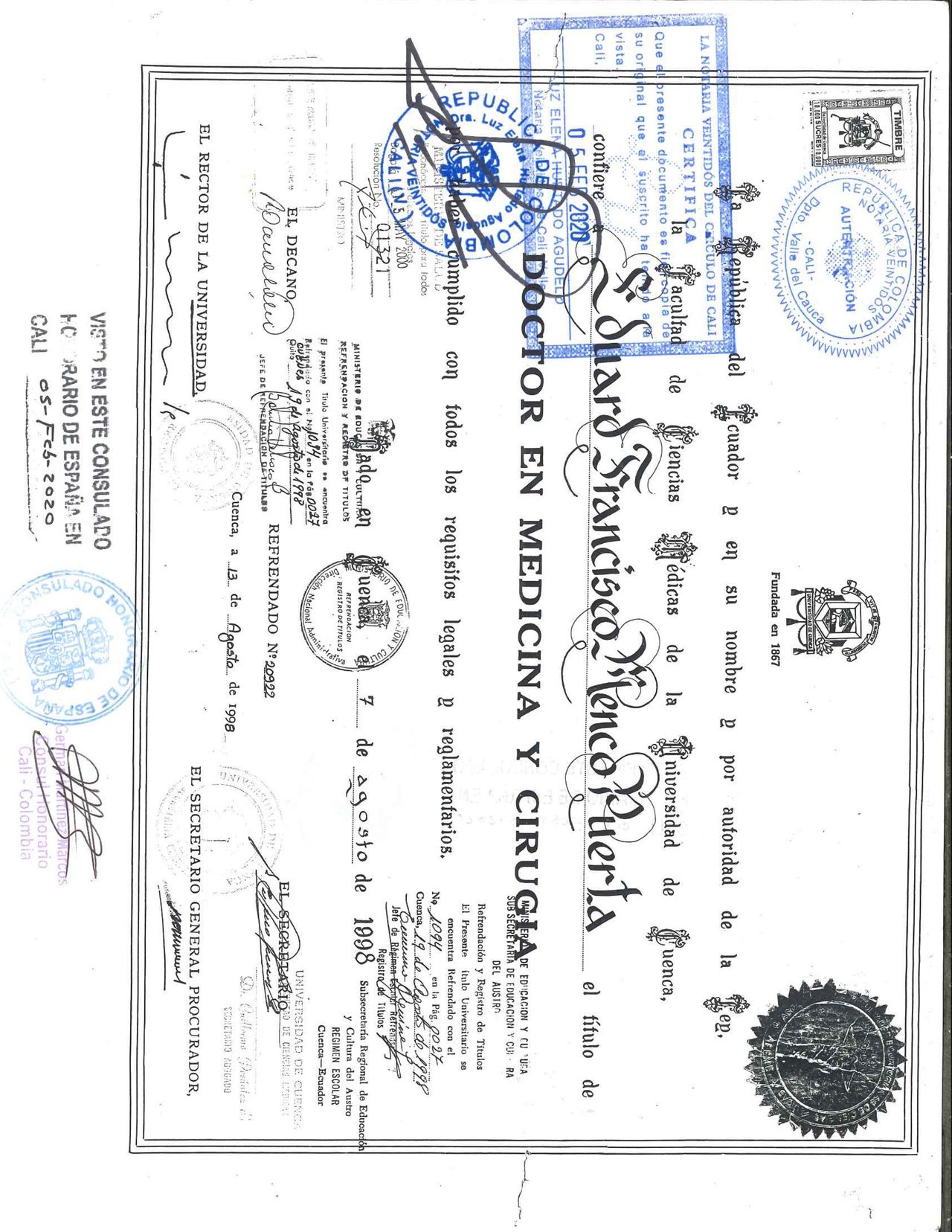 Reconocido por mi vocación de servicio, entrega al paciente y trato humanizado.